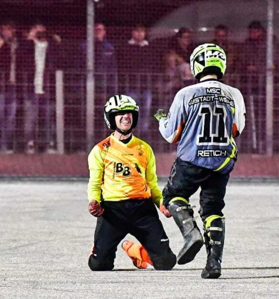Am vergangenen Wochenende pilgerten 20 Motoballfans des 1. MBC 70/90 Halle zum Finalspiel um die Deutsche Meisterschaft nach Mörsch. Der MSC Taifun richtete 2021 das Finale aus. Bekanntermaßen fiel dies im vorigen Jahr aus. Umso mehr freuten wir uns zu den zwei Finalspielen zu fahren. Wir waren richtig heiß drauf. Alle waren sich einig, wir erlebten einen fantastischen Finaltag vor geschätzten 2.000 Zuschauern. In diesem Jahr traten der MSC Ubstadt Weiher gegen den MSC Puma Kuppenheim an. Sowohl in der Jugend, als auch bei den Herren.