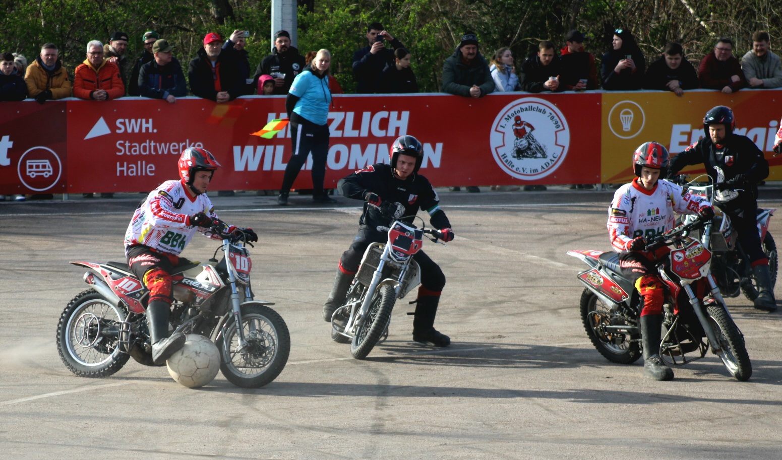 Mit diesem Spiel knackte der MBC den Zuschauerrekord aus dem Jahre 2014 von 900 Zuschauern. Dies hat der Verein auch seinen Mitgliedern zu verdanken, die seit Wochen auf dem Platz schufteten, damit Dieser zum Start der Motoball-Saison fertig wird. Danke für die ganzen Arbeitseinsätze bei Wind und Wetter!!!