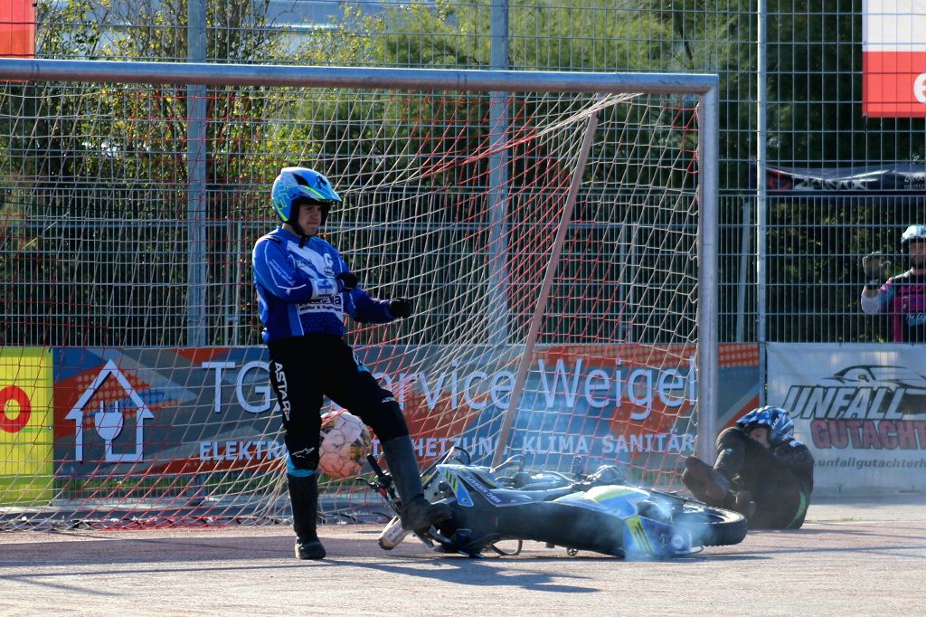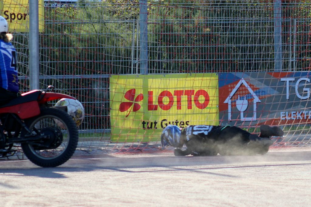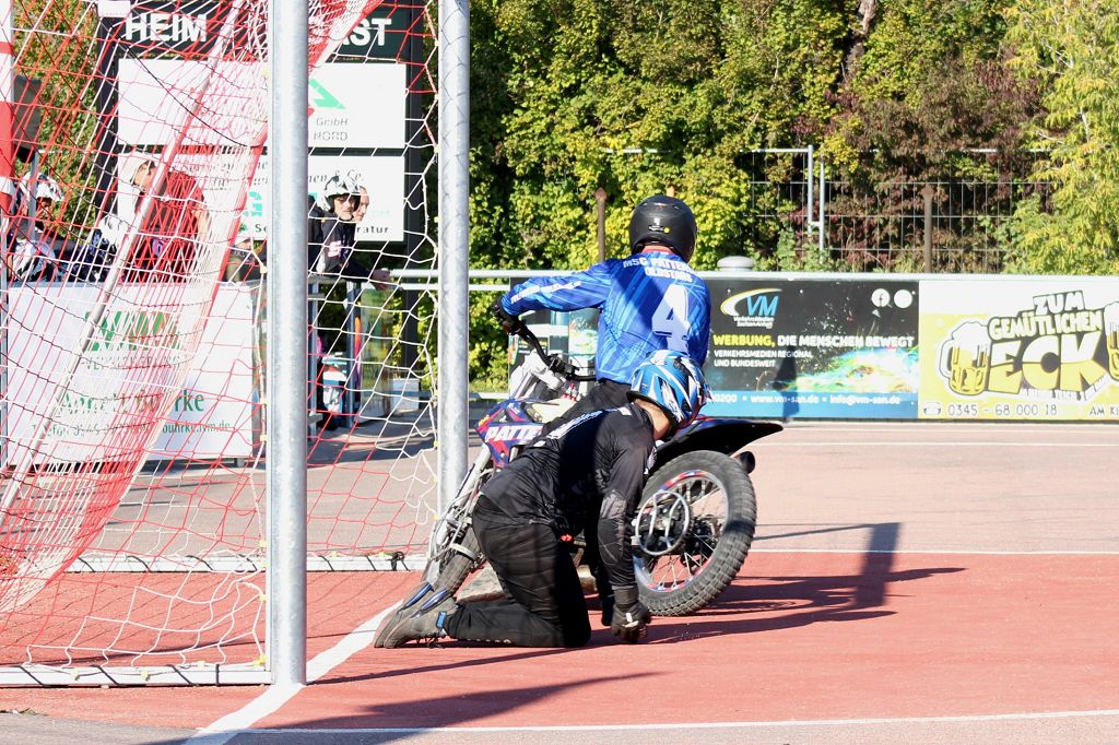 Das Spiel um Platz 3 zwischen dem MSC Pattensen und dem MBC Kierspe war ein echter Krimi auf Augenhöhe. Selbst nach der Verlängerung konnte kein Sieger gefunden werden – es kam zum ersten Elfmeterschießen in der Motoball-Arena Halle! Uns ist kein vorheriges bekannt, das je auf dem alten Platz stattfand.