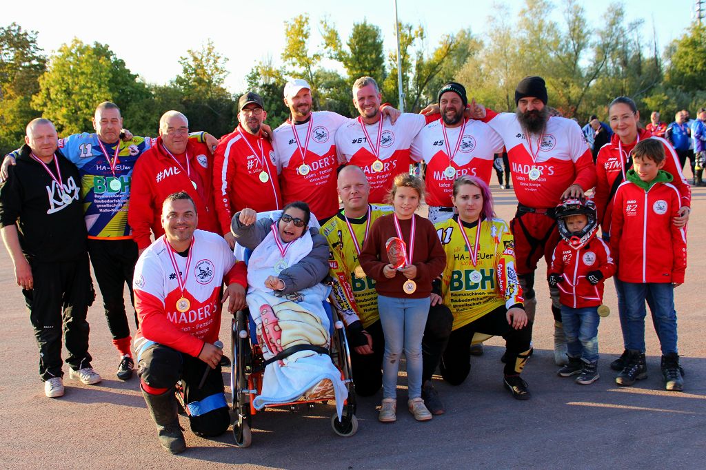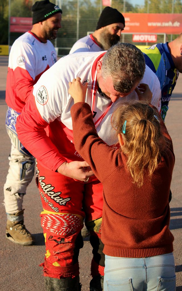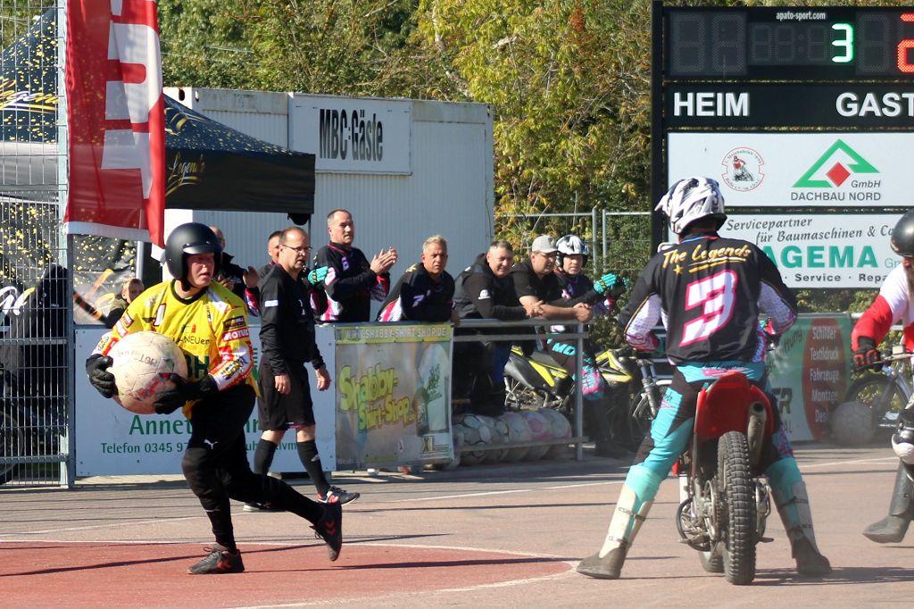 Bei bestem Wetter fand am 3. Oktober das erste Altherrenturnier auf der Platzanlage des MBC 70/90 Halle statt. Über den Tag verteilt fanden rund 350 Zuschauer den Weg zur Anlage und wurden für ihr Kommen mit hochklassigem Motoball belohnt. Für die Fans gab es ein ganz besonderes Schmankerl – eine Premiere, wie sie in dieser Form auf unserer Anlage noch nie stattgefunden hat. Doch dazu später mehr.