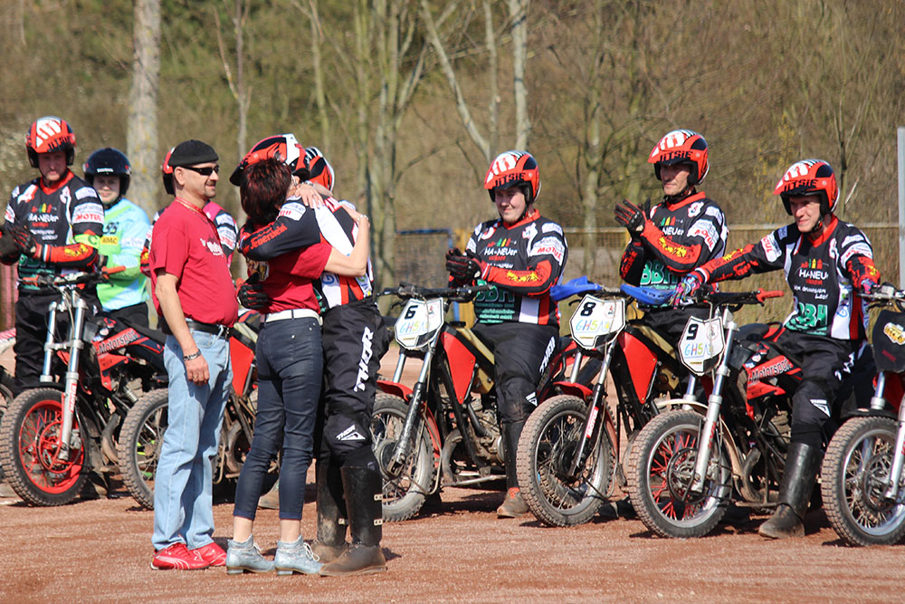 Desweiteren bedanken wir uns recht herzlich an die Wirtsleute vom „Gemütlichen Eck“. Die Familie Halang spendierte dem Verein bzw. Enrico Wochatz ein neues Motorrad. Zum ersten Spieltag und Saisonstart gab es dann die offizielle Übergabe!