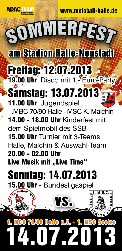 Wir wünschen allen Motoball-Fans ein schönes, sonniges Wochenende und hoffen auf zahlreiches Erscheinen.