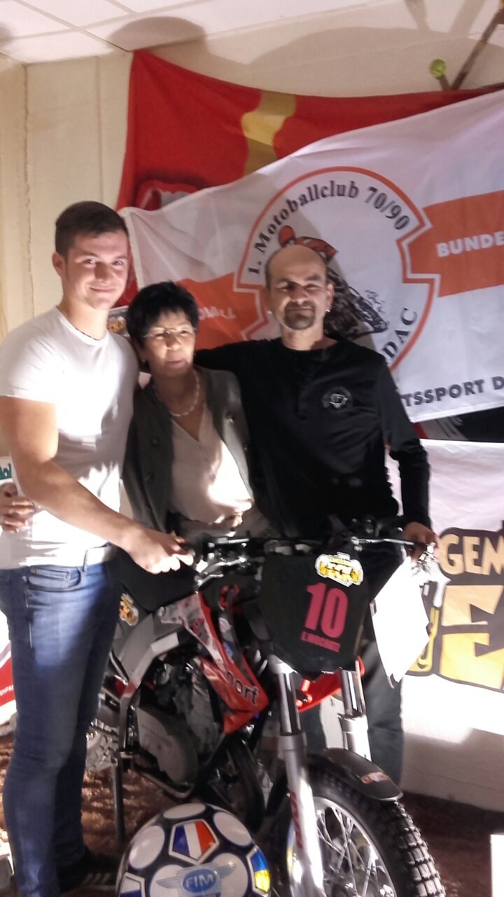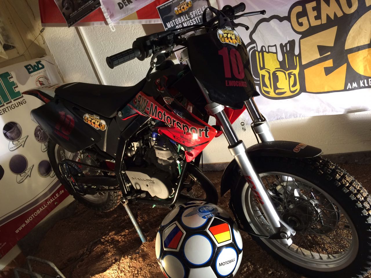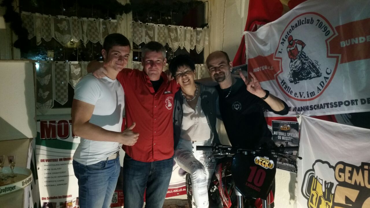 Eine dicke Überraschung gab es für die Bundesliga Motoballer des 1.MBC 70/90 Halle am vergangenen Freitag. Die Wirtsleute des Gemütlichen Eck, in Halle-Neustadt, spenden der Bundesligamannschaft des Vereins , ein fabrikneues Motoballmotorrad. Für Familie Halang eine Herzenssache. . Beide zählen seit Jahren zur treuen Fangemeinde des Vereins und finden , das der einzige Motoballverein Mitteldeutschlands diese Unterstützung verdient und vor allem braucht. Fahren wird die Maschine Enrico Wochatz. Durch Verletzung in seiner Entwicklung zurückgeworfen,wird er sicher mit dieser Maschine einen neuen Schub bekommen.