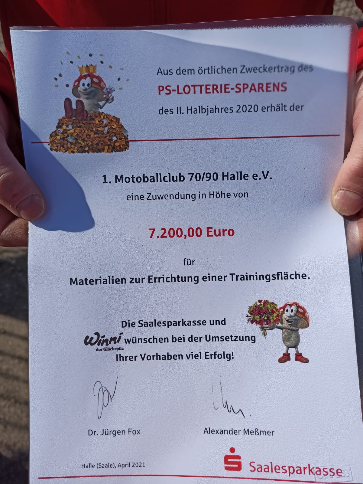 Wir danken der Saalesparkasse Filiale Neustädter Passage für die Spende zur Unterstützung unseres neuen Motoball Stadions.